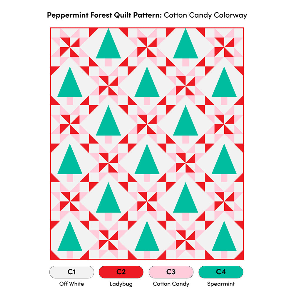 Need colorway ideas for the Peppermint Forest quilt pattern? Check out some options below in Moda Bella Solids.