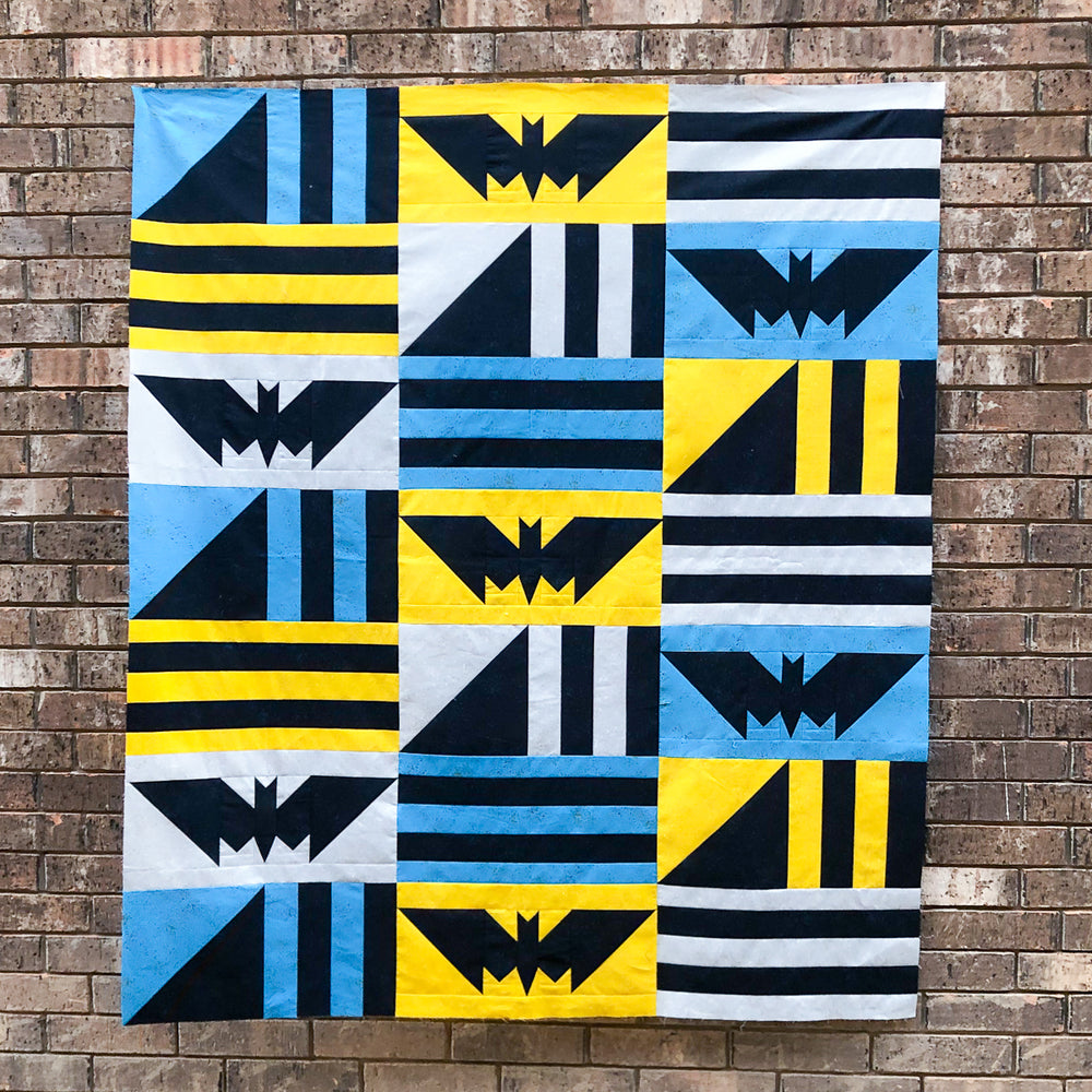 The Batty Bats Quilt Pattern is a throw size pattern that is super fun for Halloween or your favorite Batman fan! The patt...